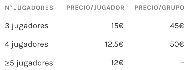 Al hacer la reserva, déjanos en los comentarios que deseas una sesión a domicilio, indicando el lugar donde quieres que nos desplacemos. Igualmente nuestro director de juego se pondrá en contacto con vosotros para confirmarlo y ultimar los detalles.